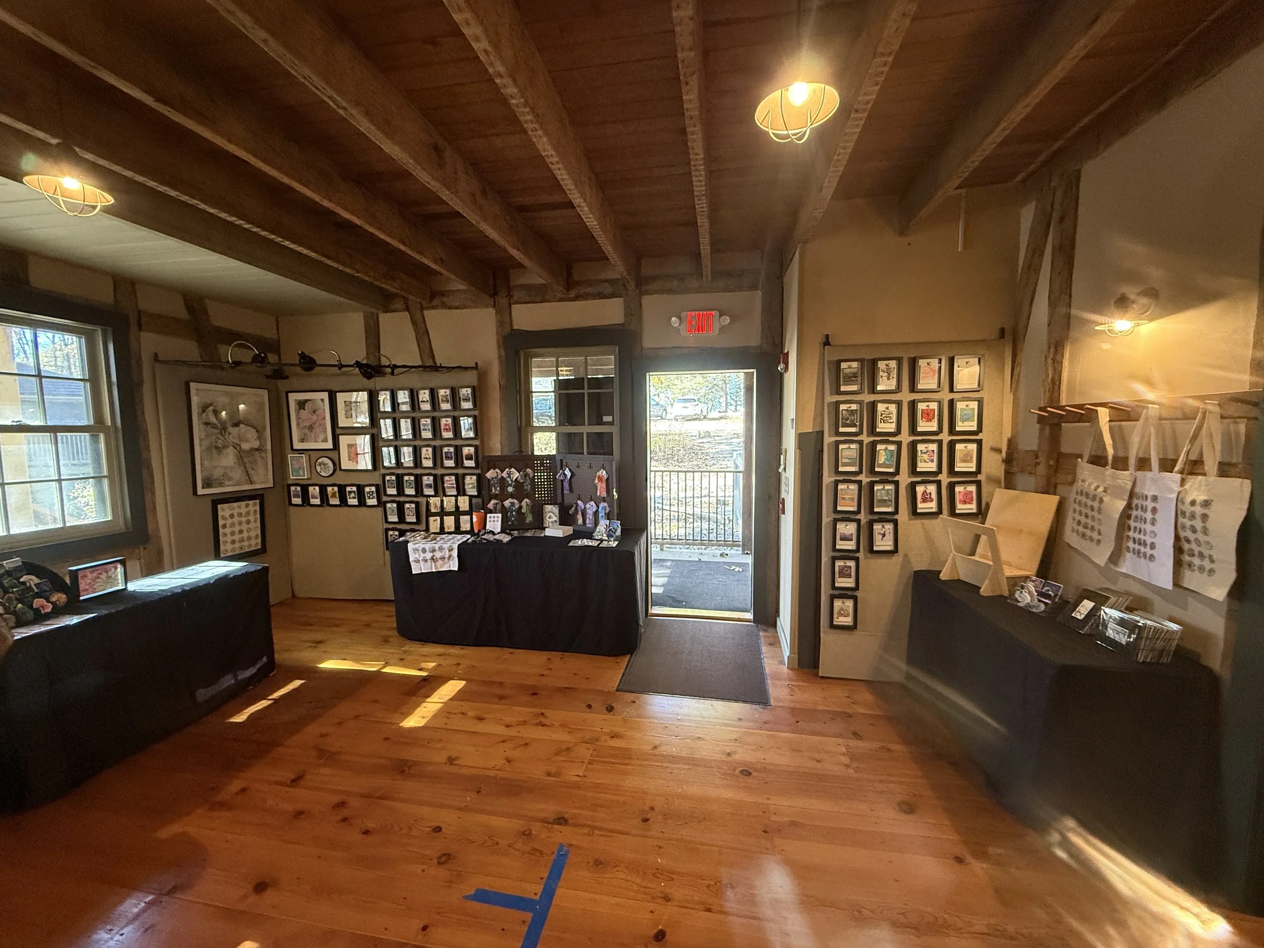 2025 Shaw Nature Reserve Art Show set-up in Lee Lodge.