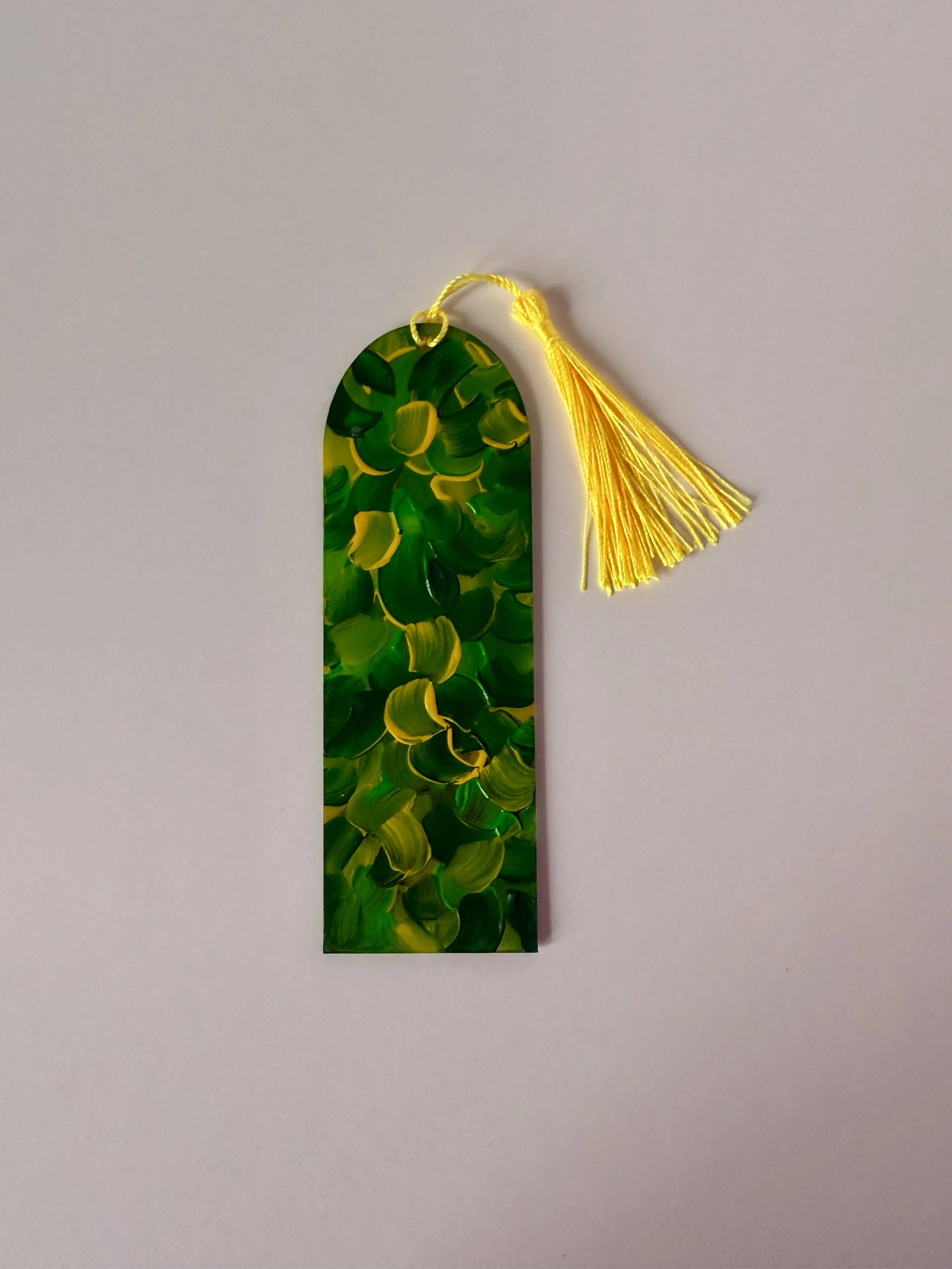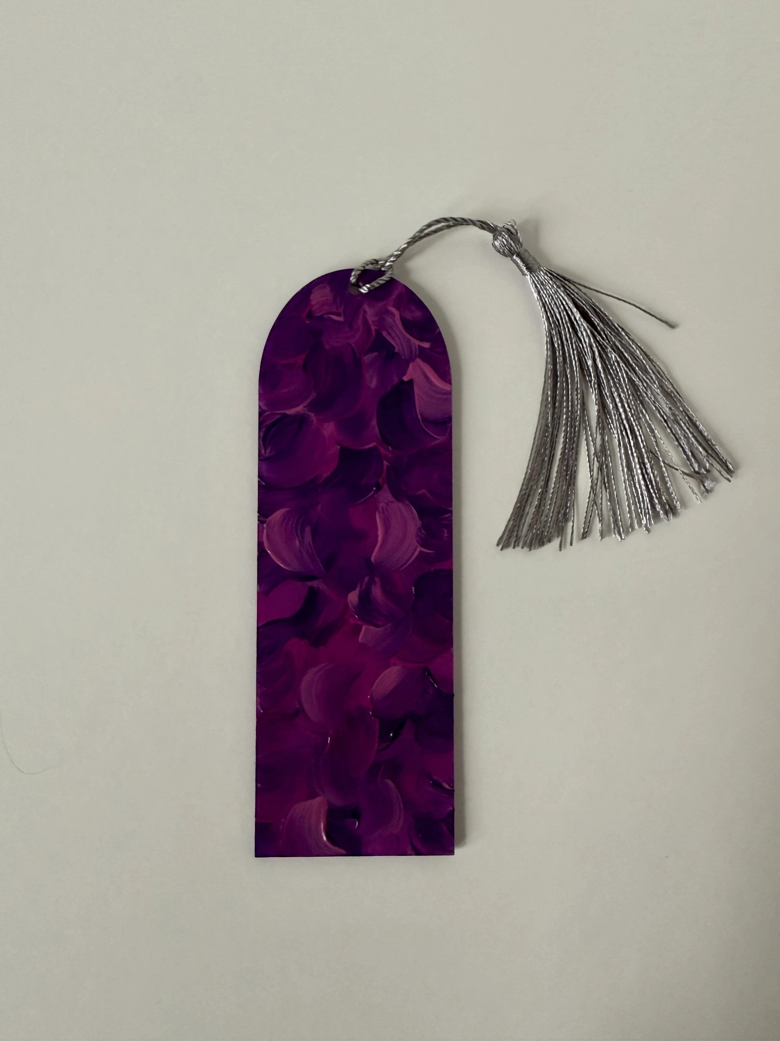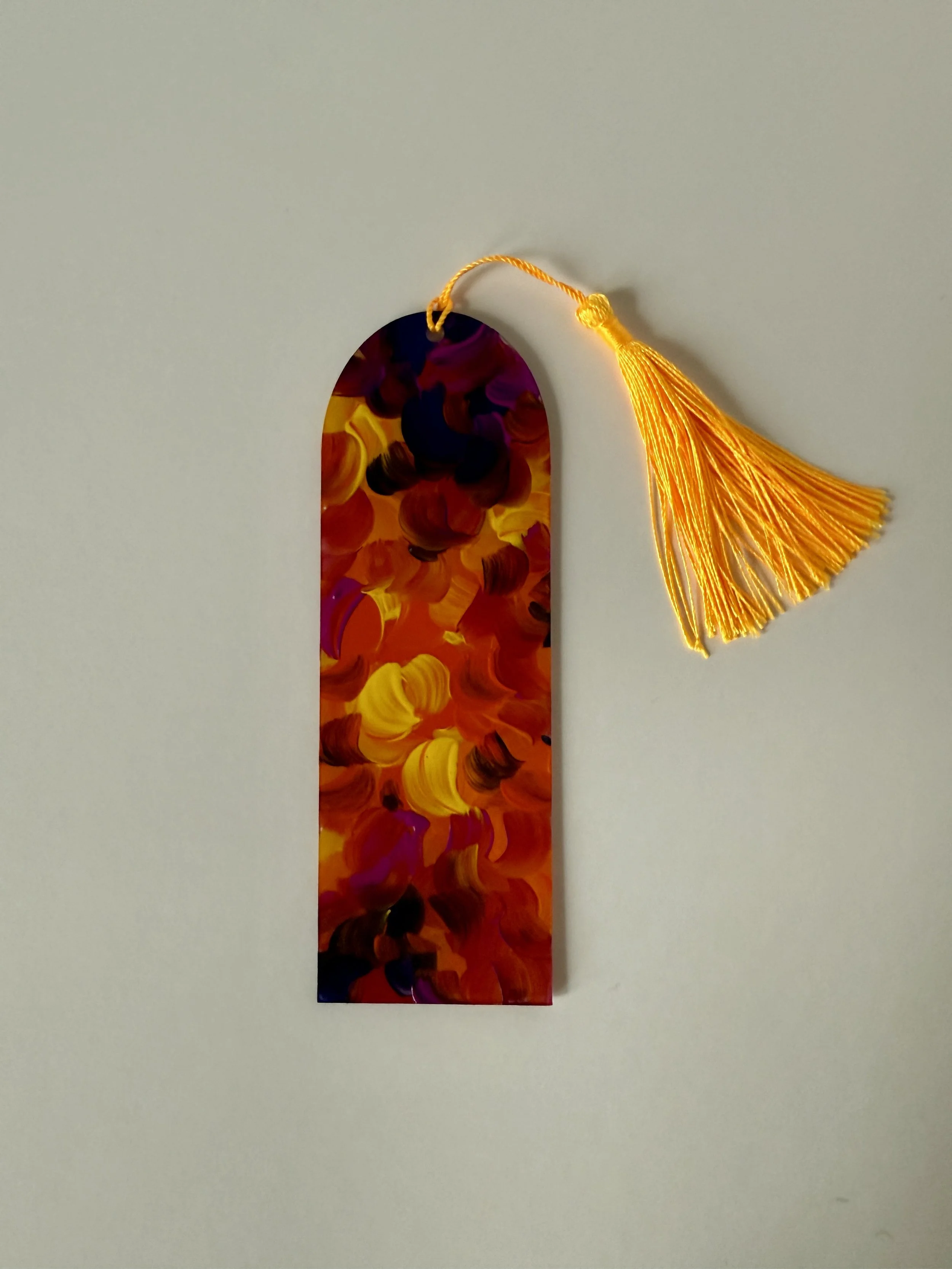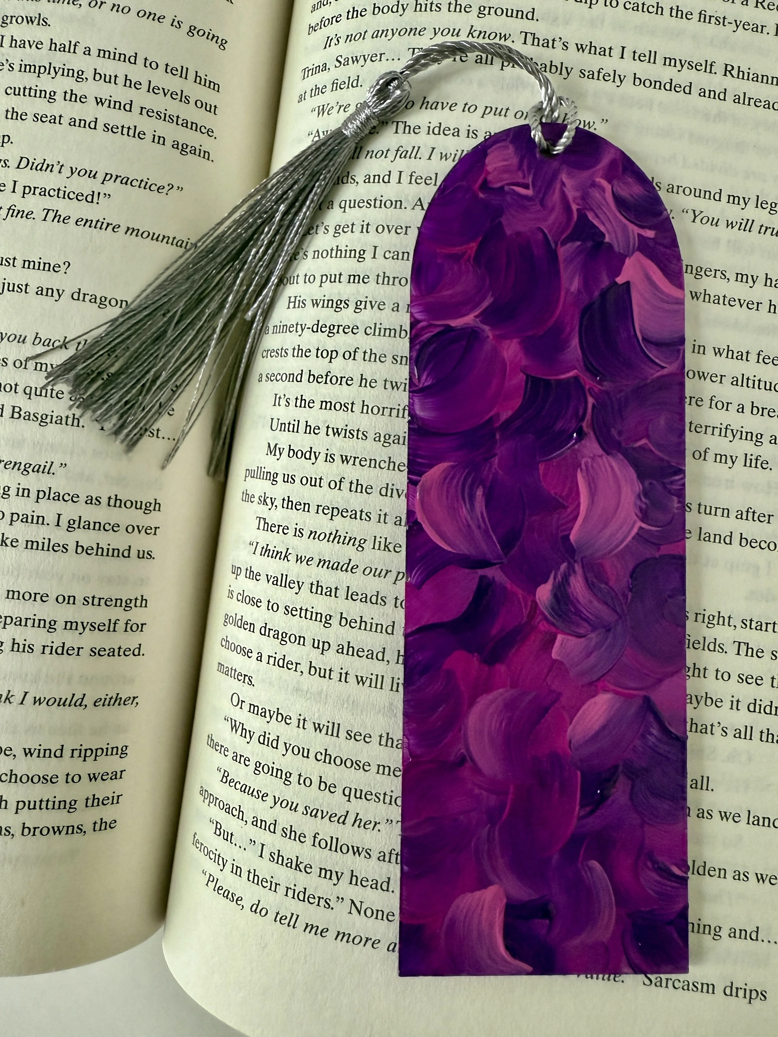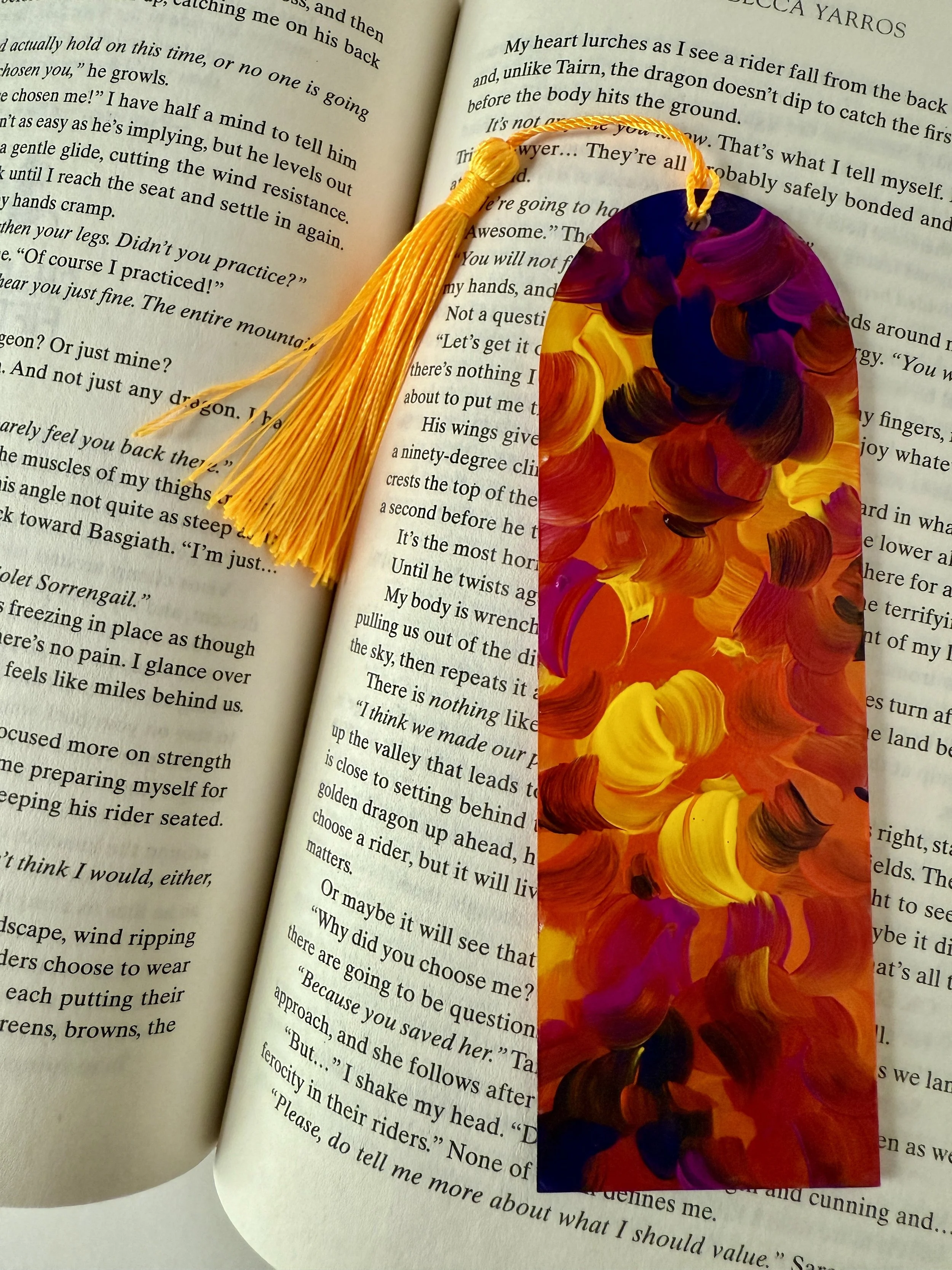 A one-of-a-kind acrylic hand-painted bookmark with a tassel. A great gift for the book lover in your life!