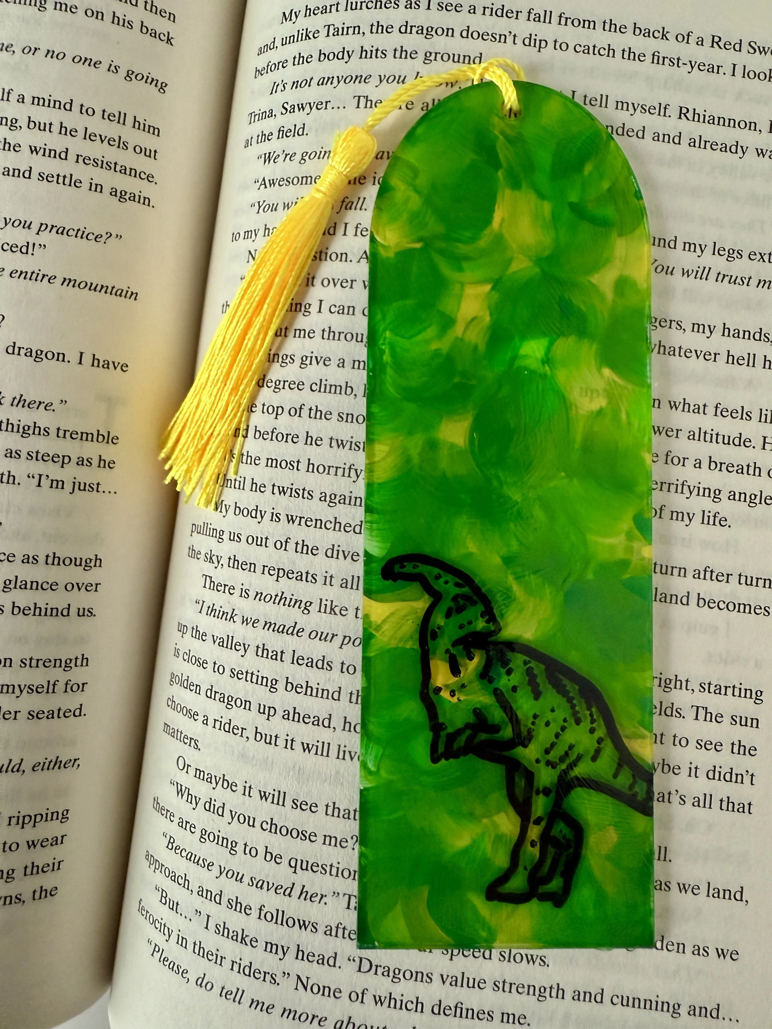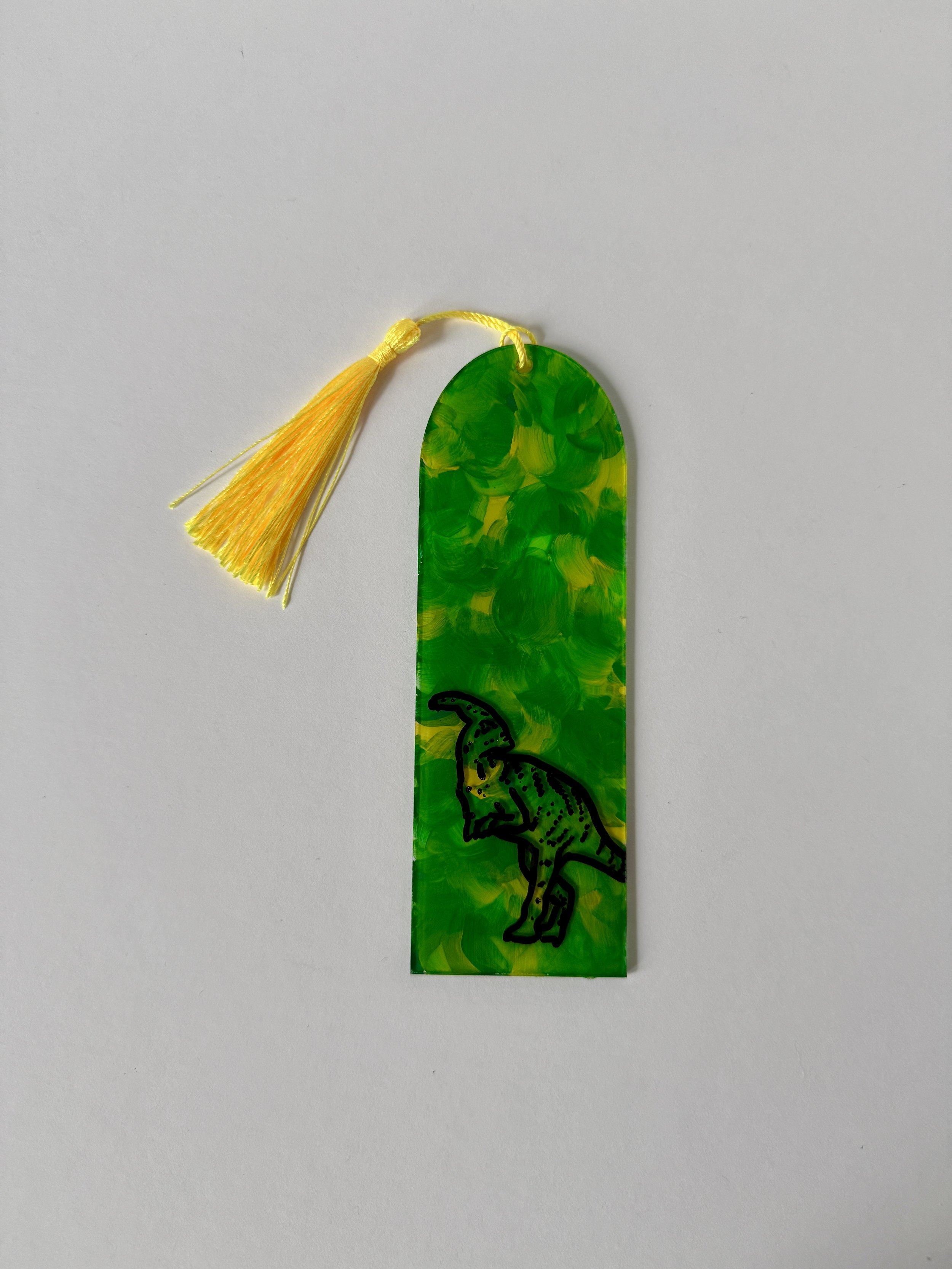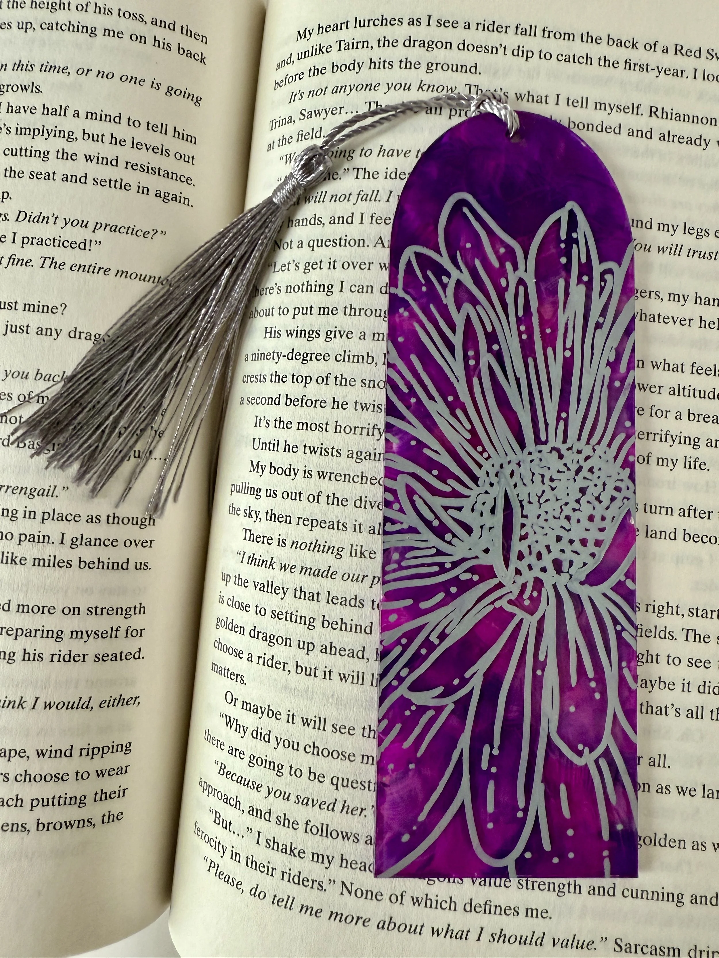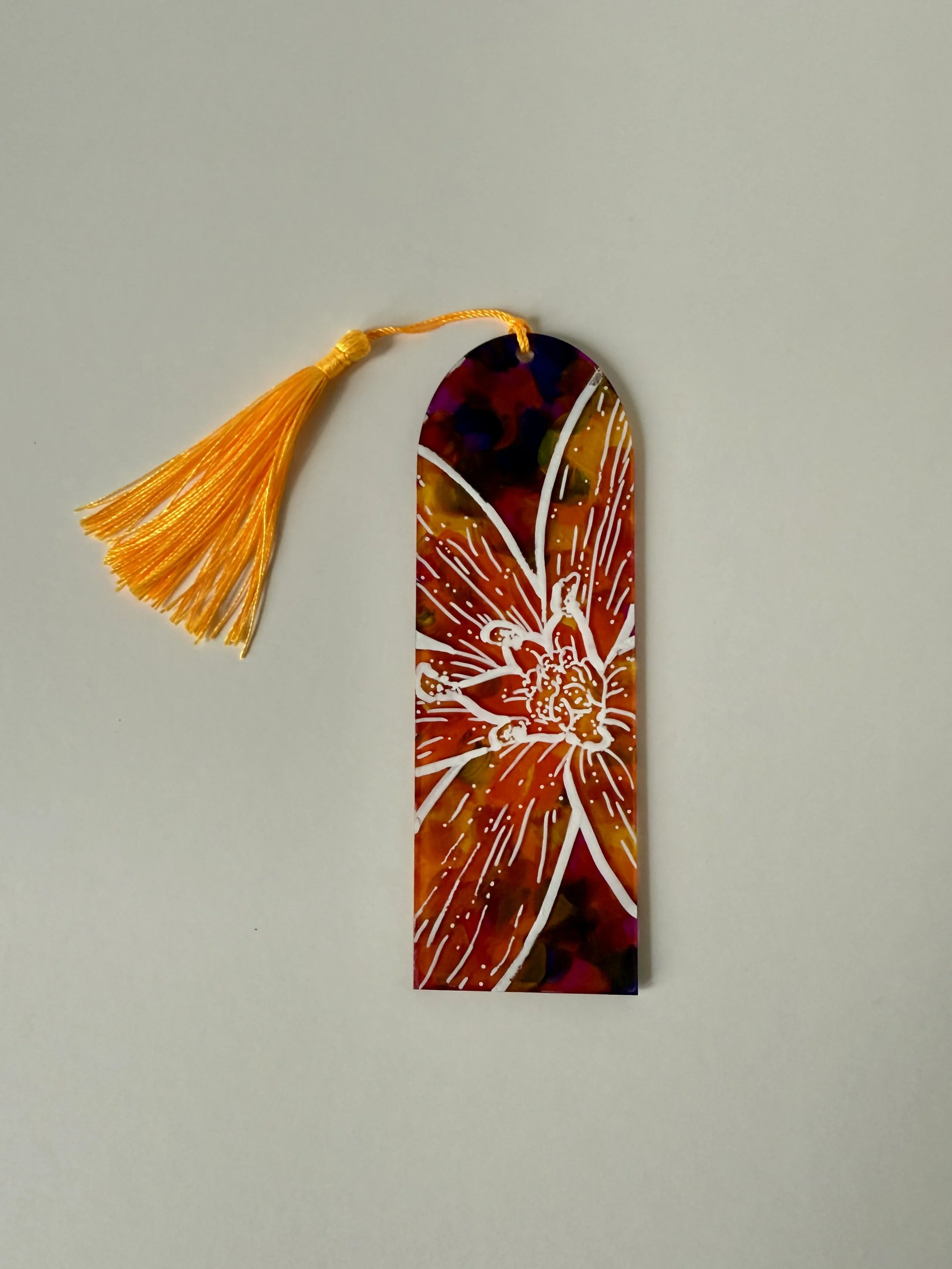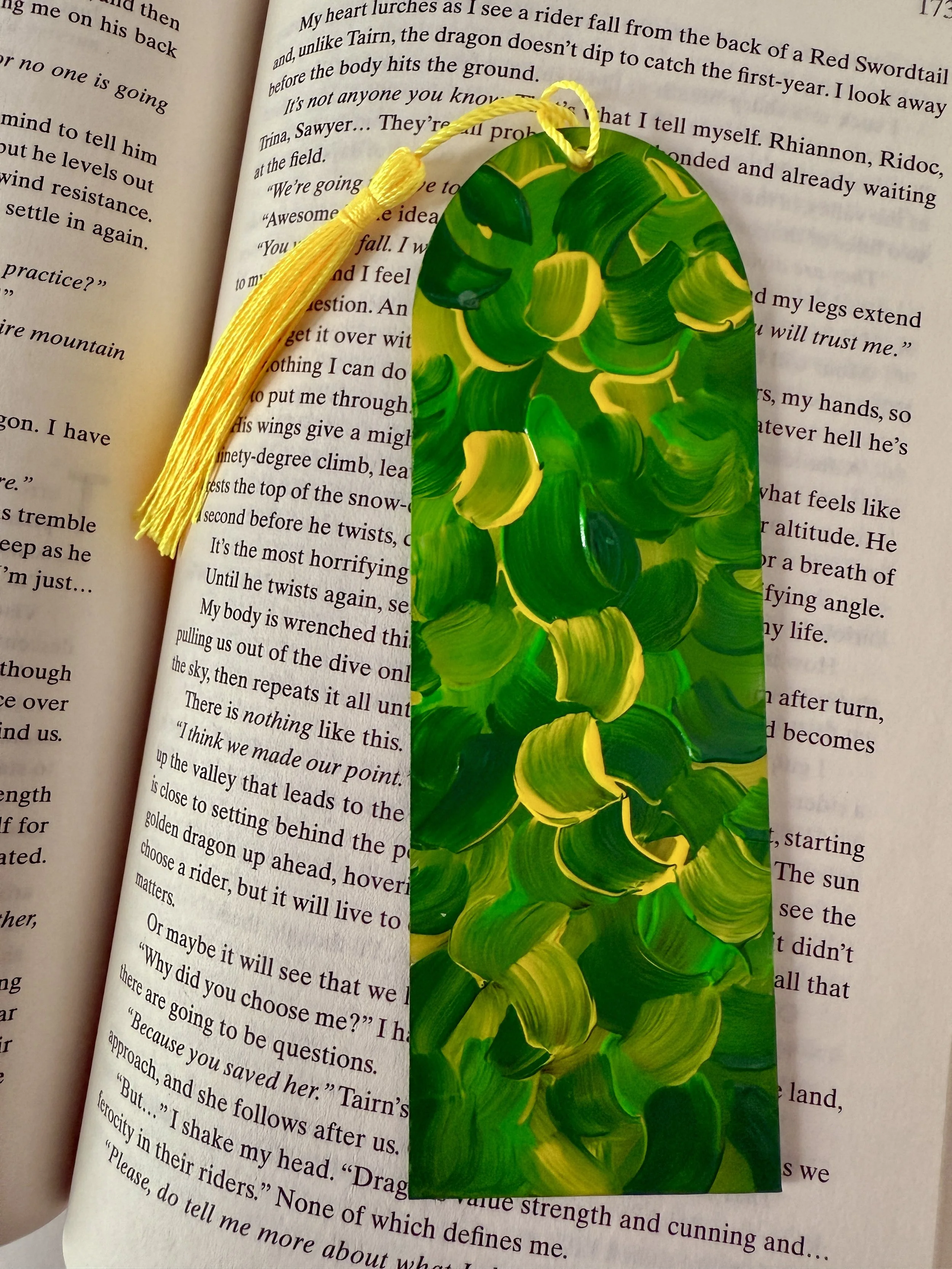 A one-of-a-kind acrylic hand-painted bookmark with a tassel. A great gift for the book lover in your life!