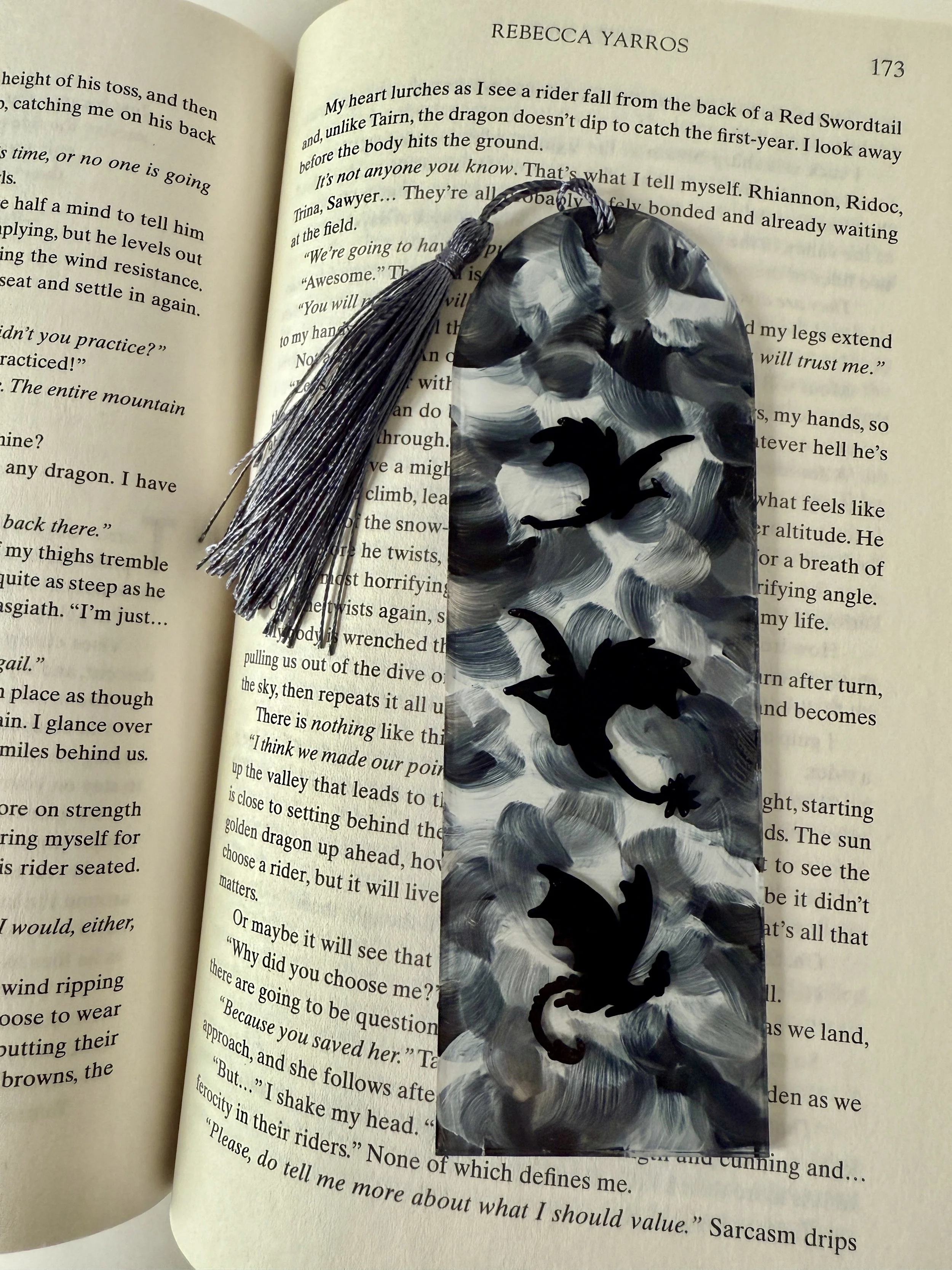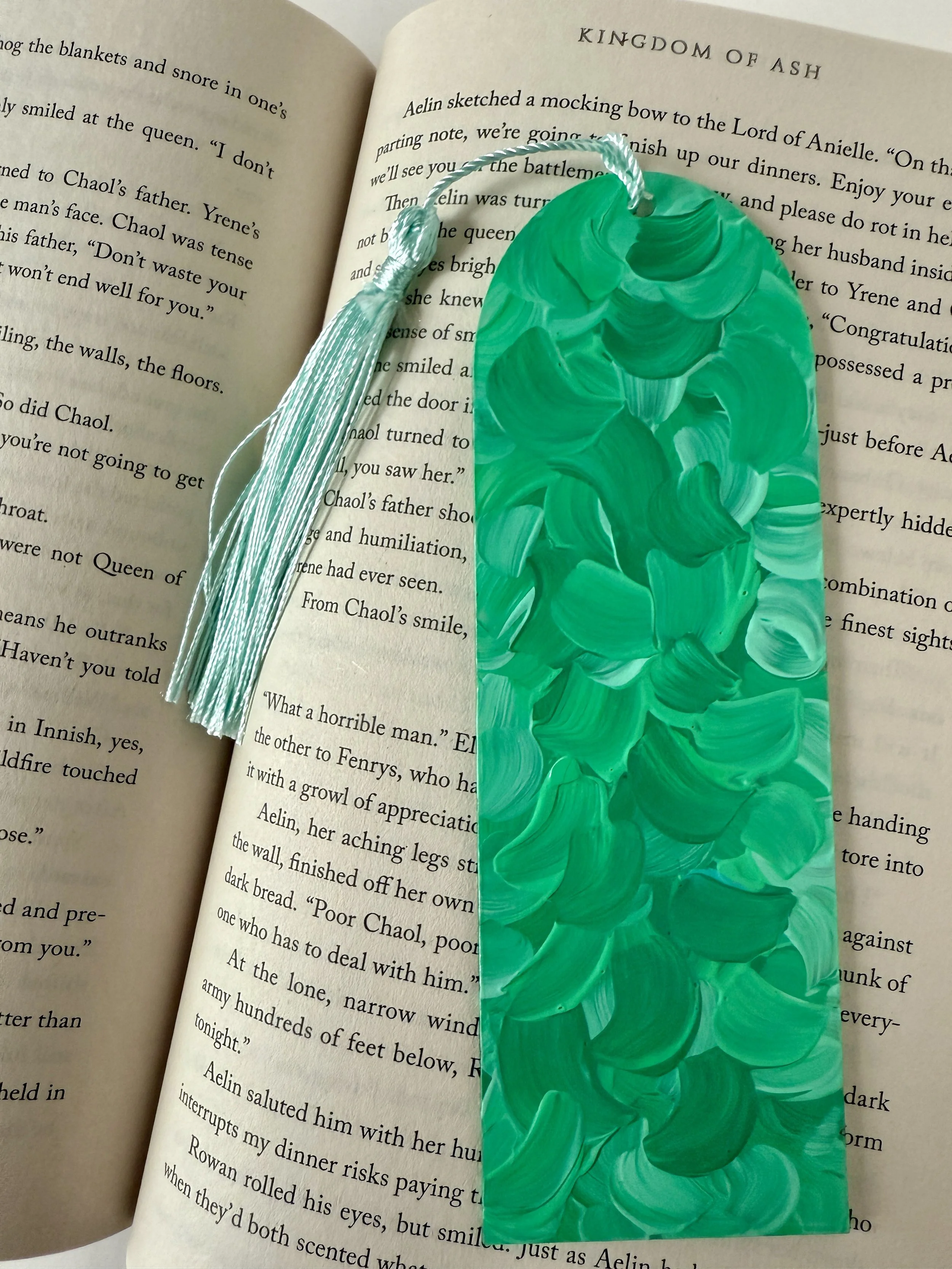 A one-of-a-kind acrylic bookmark created using a page from a Harry Potter book with a tassel. A great gift for the book lover in your life!