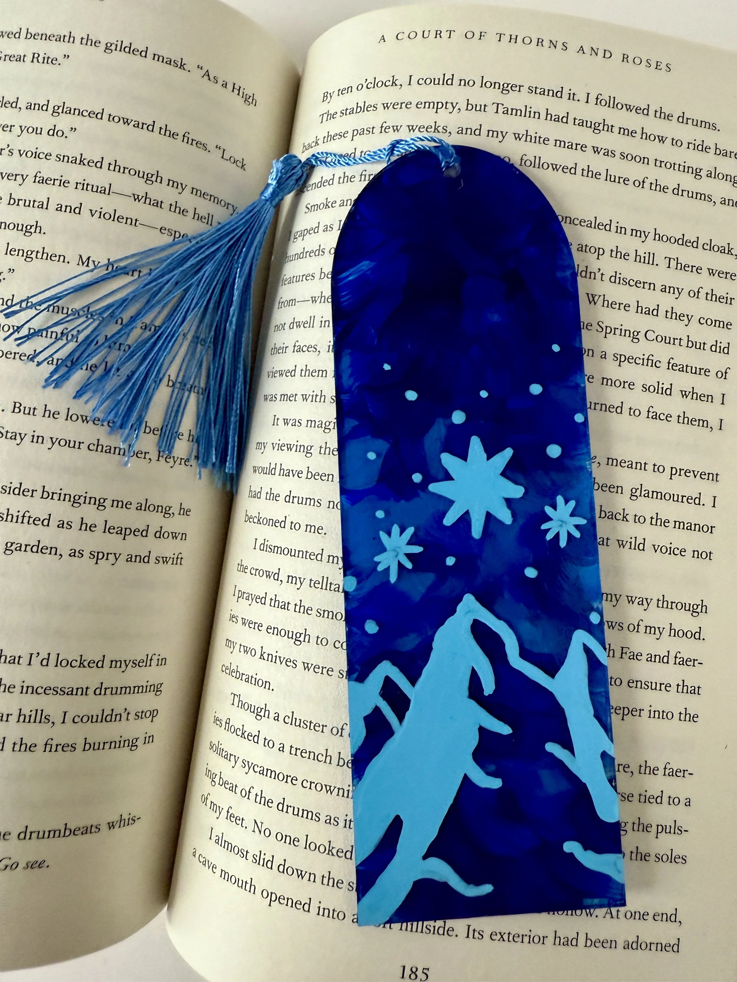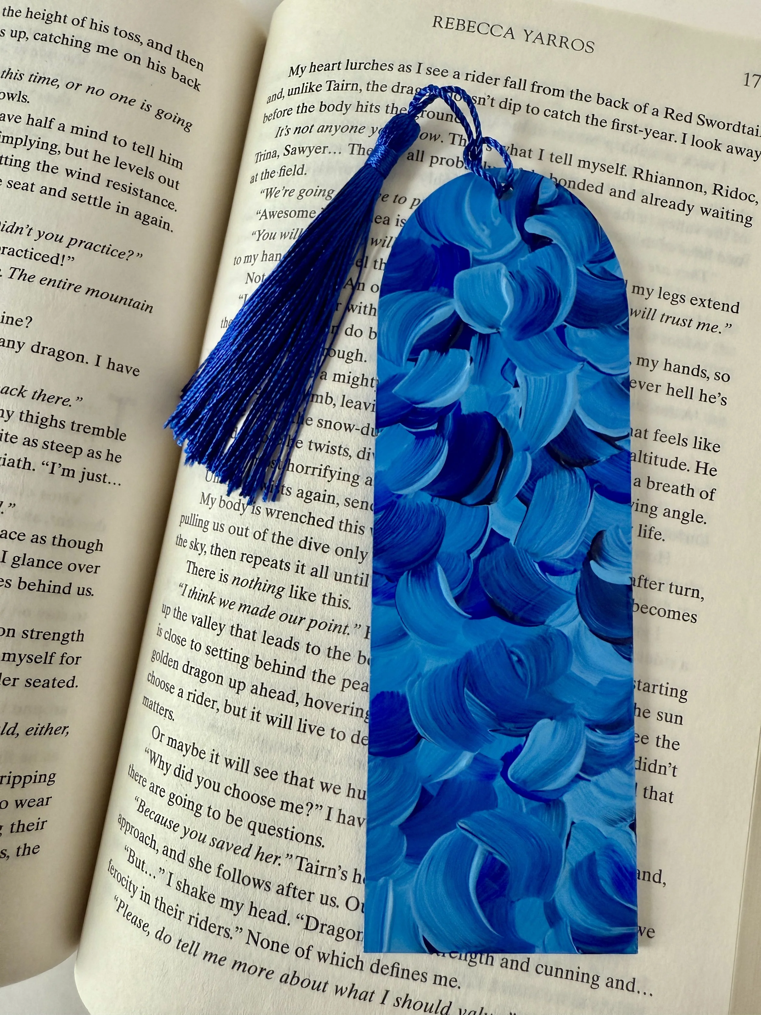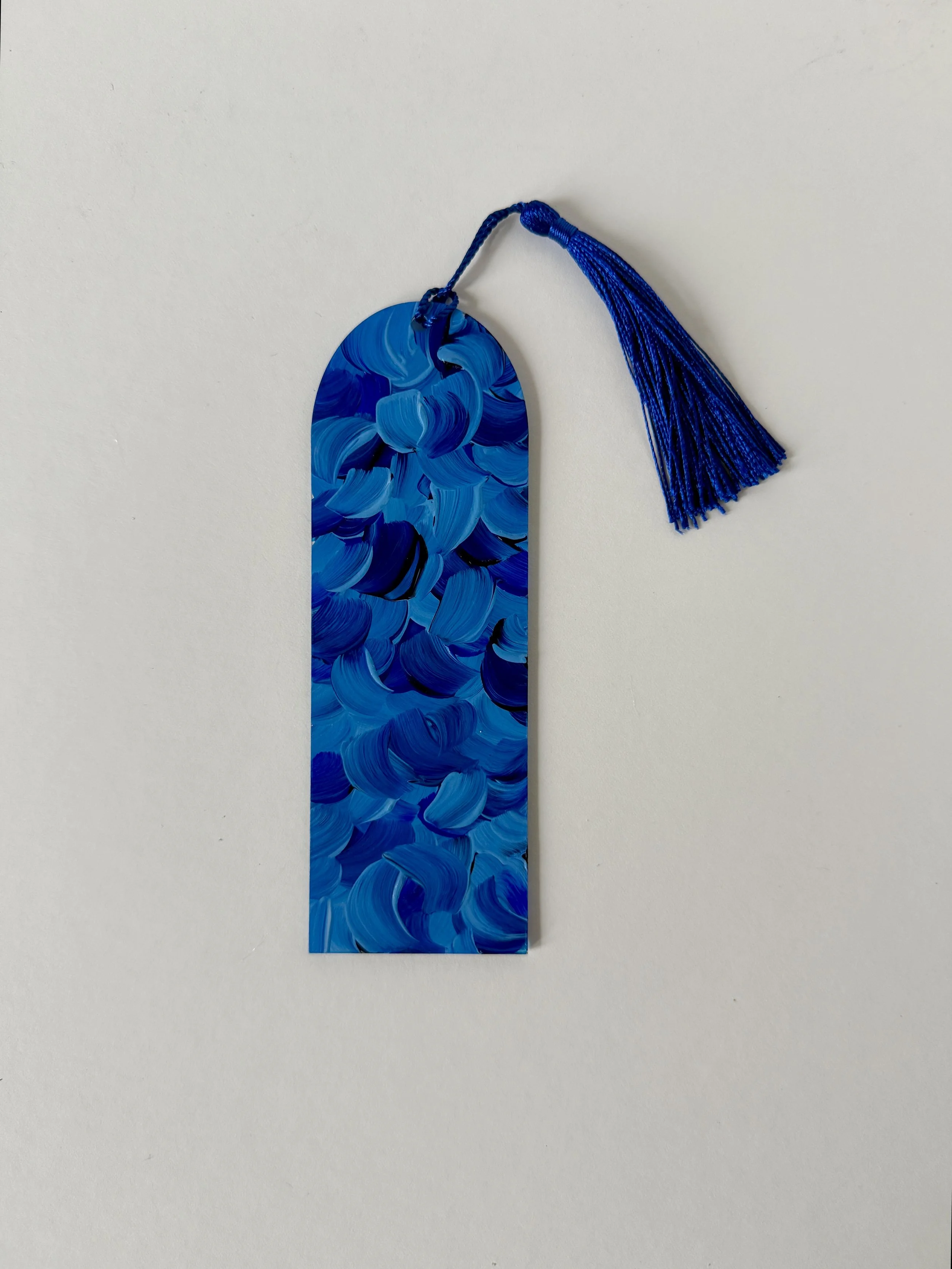 A one-of-a-kind acrylic hand-painted bookmark with a tassel. A great gift for the book lover in your life!