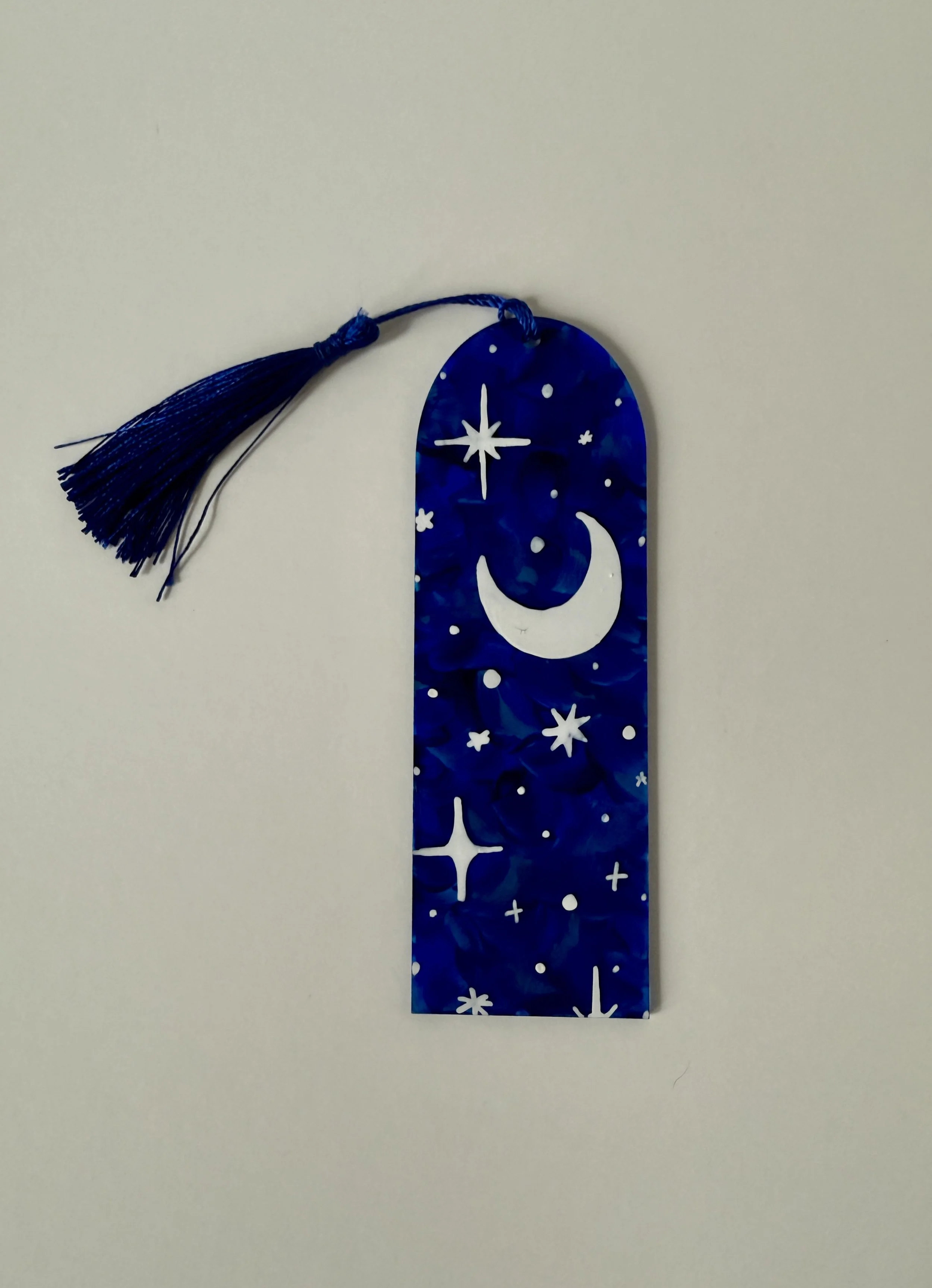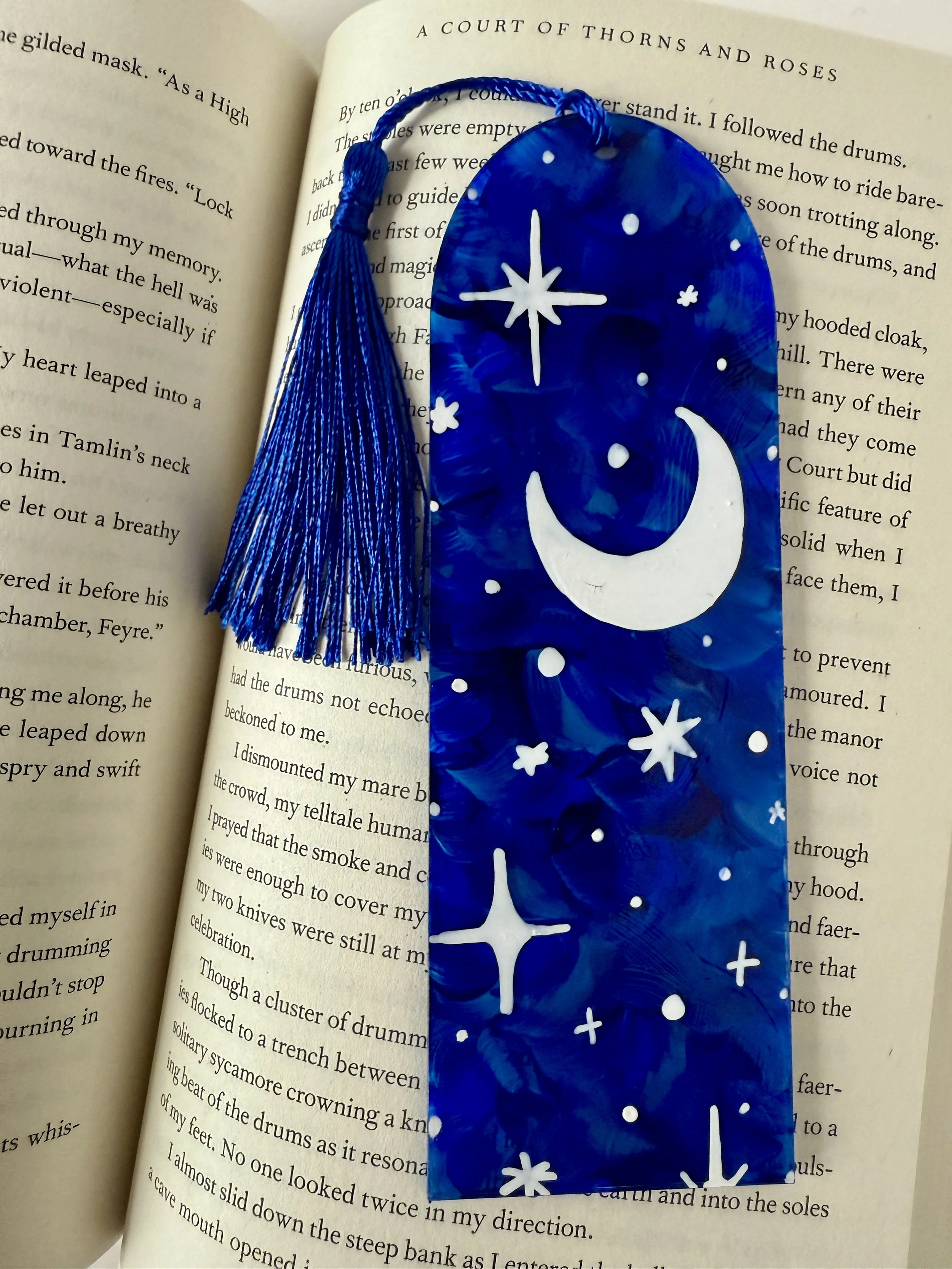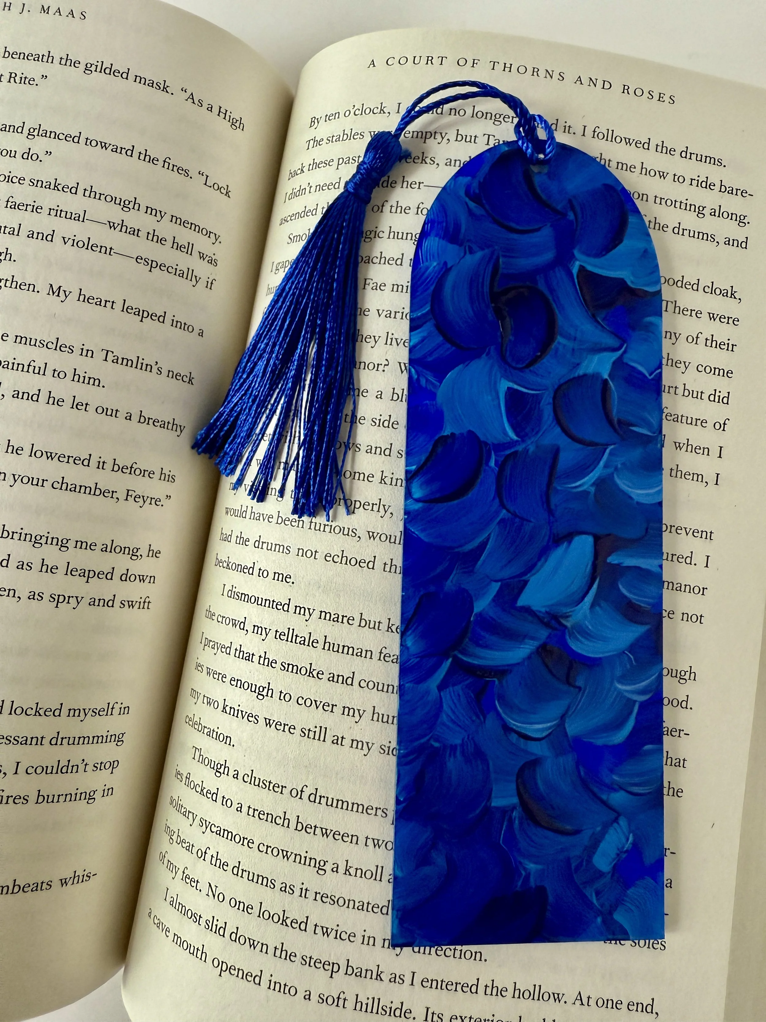 A one-of-a-kind acrylic hand-painted bookmark with a tassel. A great gift for the book lover in your life!